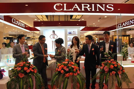 国芳百货领导与娇韵诗公司领导为专柜开业剪彩