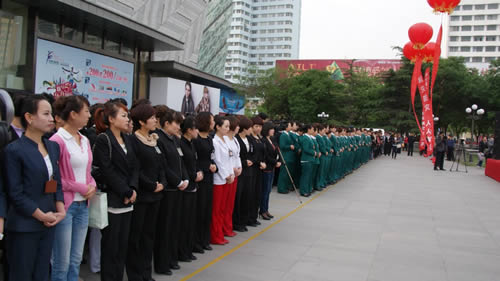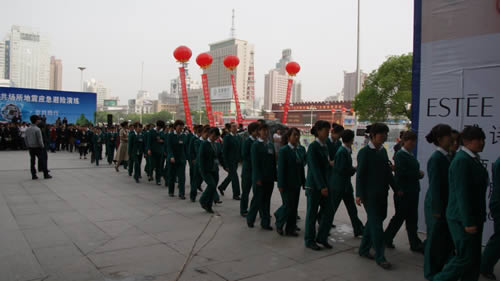 员工疏散完毕后,以整齐的队列在东方红广场集合列队,展示了良好的精神风貌
