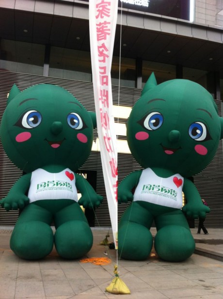 2012年9月8日,国芳集团兰州总店13周年店庆盛大启动,“新国芳•新店庆”的主题寓意着13年店庆将成为一个涅槃重生的新起点。店庆期间的东方红广场被浓妆素裹,带有国芳综超和电器的空飘和条幅布满了整个广场,国芳百货门前的巨型充气拱门和四个可爱的巨型充气吉祥物“Weekee”迎接着每一位进店的顾客,高清LED屏将滚动播放着我们的促销广告和宣传片。今年的店庆促销活动我们延续了以往60小时不打烊的营销模式,并分为阶段性的以第一、二、三波的促销阶段来不断的提升顾客的购买欲望。但是今年最值得全体市民期待的就是国际精品的闪亮登场,国芳百货从2011年起逐步引入了DIOR、兰蔻、雅诗兰黛、纪梵希、娇兰、娇韵诗、碧欧泉等国际一线化妆品,今年的店庆以前之后在一线城市和时尚杂志里面见到的Coach、Gucci、Ermenegildo Zegna,Emporio Armani, Burberry, Max Mara,在这个金秋时分就像一场梦境一般降临到了每一位兰州市民的身边,从此我们可以大声的告诉世界,我们在家门口也可以购买到世界一线精品,兰州从此也拥有了一家可以站在世界时尚高端的百货商场。
