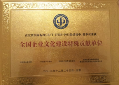 2012年度“全国企业文化建设特殊贡献单位”荣誉奖牌