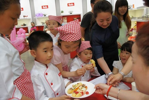 穿起厨师服,头带厨师帽,20多个小厨神在国芳百货广场店7F菲仕乐专柜,展示了精彩的DIY厨技。在家长的帮助下,孩子们发挥创意,制作个性匹萨和蔬果汁,在生活中感受成功与快乐!