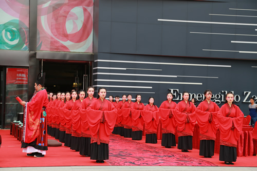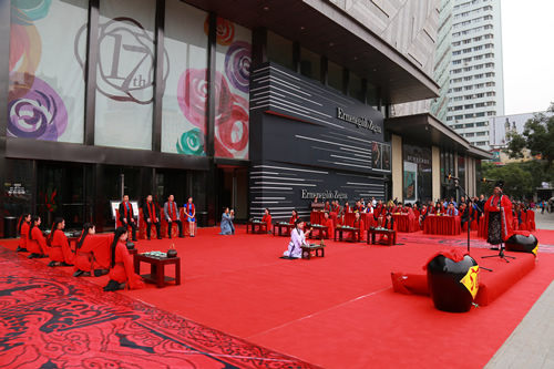 国芳集团十七周年司庆大型文化活动——汉式迎宾礼于9月3日上午8时30分,在国芳百货正西门正式上演。除集团各分子公司管理人员外,还邀请了与国芳集团合作多年的数十名供应商代表一同出席此活动。
