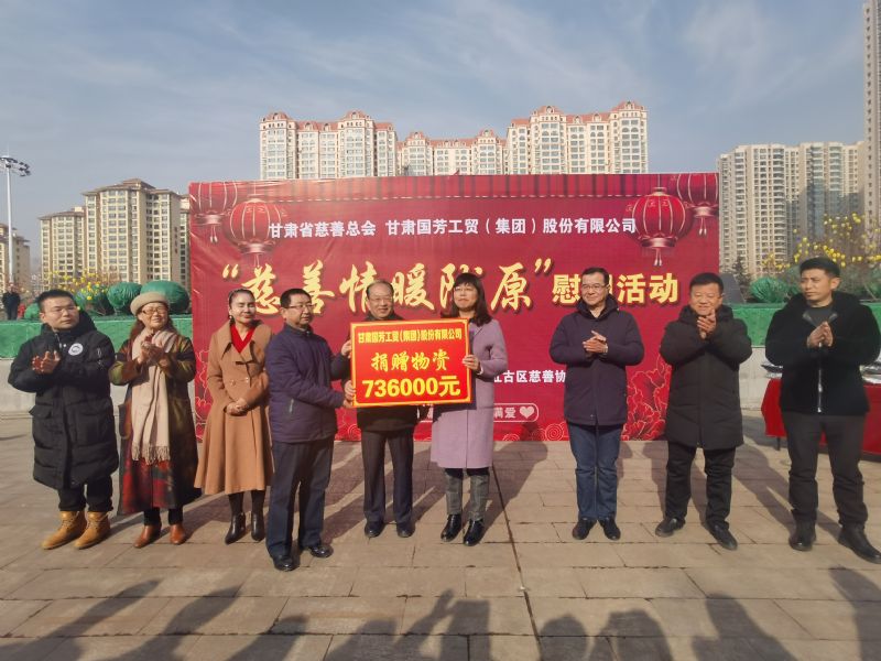2020年1月14日,甘肃省慈善总会、兰州市慈善会以及红古区民政局携甘肃国芳工贸(集团)股份有限公司在兰州市红古区海石广场共同举行“慈善情暖陇原”暨物资捐赠活动,将2000件棉衣,1200余件秋裤,2000余件保温杯以及1000余件棉拖合计价值73.6万元的过冬物资带给兰州市红古区的困难群众。