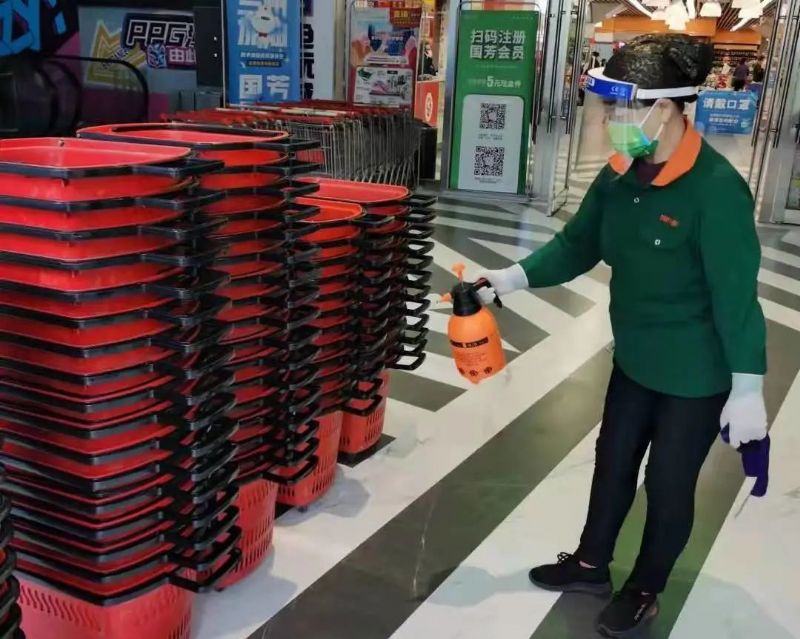 公司第一时间统计全体员工健康安全状况,对商场外围、各出入口进行整体消杀;百货、超市公共区域设施、电梯、卫生间等区域每两小时进行消杀;开启商场新风系统进行空气对流,并对空调系统进行消杀,为顾客营造安全放心的购物环境。