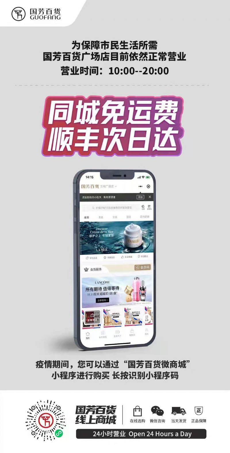 集团公司旗下国芳百货积极响应政府部门号召,采取全员居家办公形式,呼吁顾客免外出、免接触,通过国芳线上商城进行商品购买,同时增加直播平台推广量,保证安全的基础上满足顾客居家购物需求。国芳百货全体员工努力在特殊的疫情环境下,为顾客解燃眉之急,想顾客之所想,急顾客之所急!