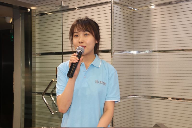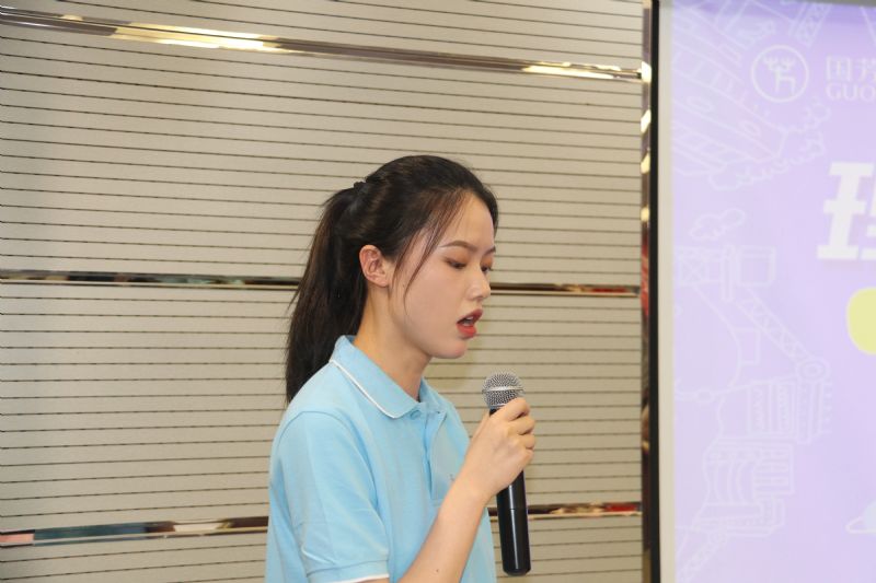 2021届管理培训生代表马明月上台讲话,分享个人感受并为新一届管培生送上暖心寄语。同时现场还播放了往届优秀管培生寄语视频,充分展现出国芳集团人才培训战略。